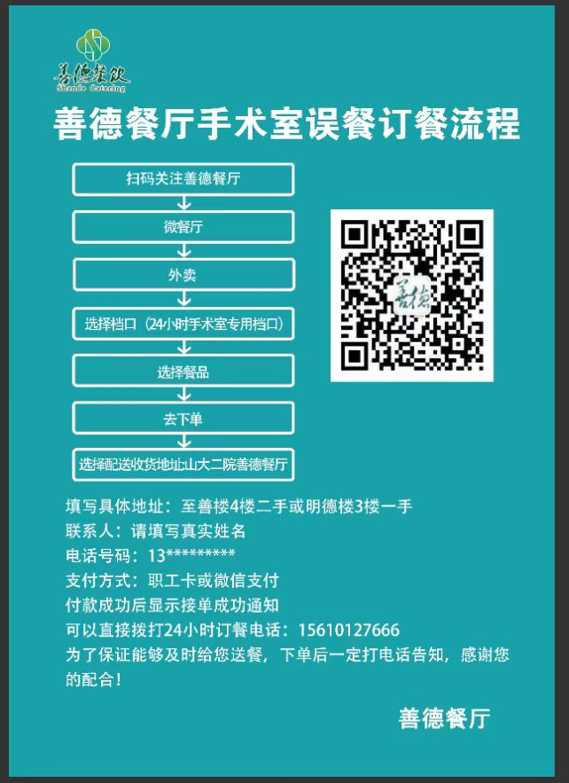 為了提高訂餐的便捷性,餐廳開(kāi)通“線上+線下”相結(jié)合,支持多渠道點(diǎn)餐,職工可通過(guò)善德線上微餐廳“24小時(shí)手術(shù)室專用檔口”和24小時(shí)專屬服務(wù)電話隨時(shí)隨地點(diǎn)餐,出餐后由專人及時(shí)上門(mén)派送,充分滿足醫(yī)務(wù)人員個(gè)性化用餐需求,為每一位在臨床付出的醫(yī)務(wù)職工做好全天候餐飲保障工作。